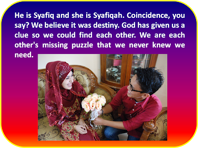 Tapi contest Style-weddings ni best sebab tak perlu like-like, dan keputusan juri adalah tertakluk kepada mereka seratus peratus! Hadiah pulak, memang lumayan dan berbaloi! Ok, mukadimah dah panjang, mari kita tengok cerita saya ni. Cerita ni ditulis dalam Bahasa Inggeris sebab Bahasa Melayu saya tunggang-langgang. :)